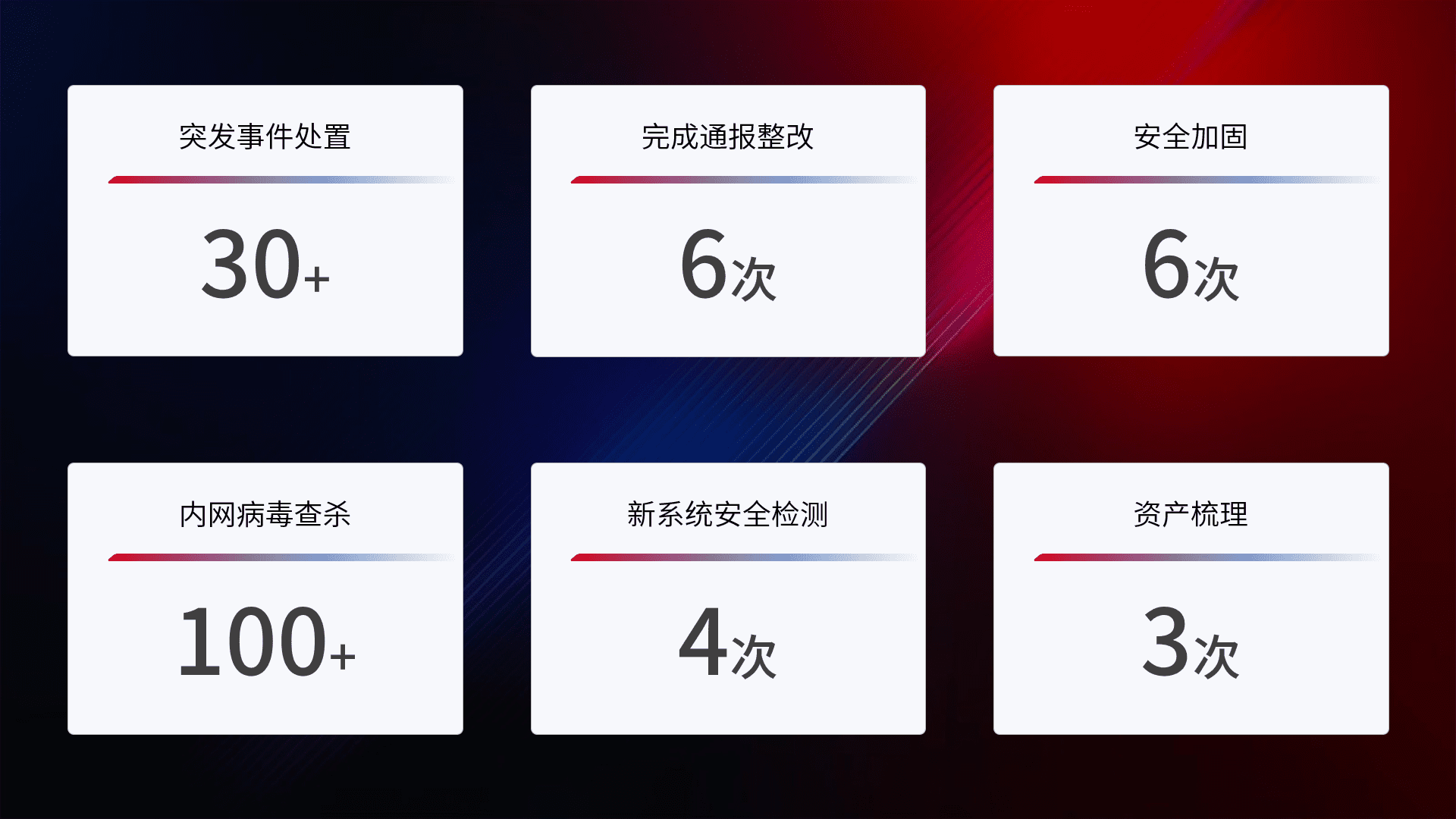 网络安全加固与风险管理:通过技术加固手段,,,如加强区域隔离,,,,缩减攻击内网横向移动的范围;优化现有网络安全管理制度,,,降低网络威胁暴露面,,,减少被黑客攻击的可能性。。。